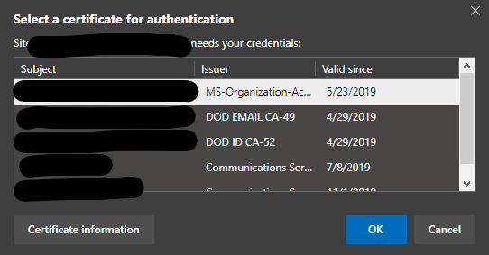 So lets say you’re moving from Windows 2008 R2 IIS 7.5 to something newer and you have Certificate Trust List (CTL) you use for CAC authentication. You’re used to that CTL being passed down to the client to then filter the user certificates on their system to only be the ones available that you want them to be. You migrate to Windows 2019 with IIS 10 and instead of that nice filtered list you instead get ALL certificates on a user’s system instead.